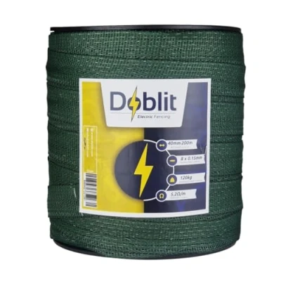 Doblit 40mm Poly Tape Electric Fence Horse Fencing Conductor Green 200m Roll