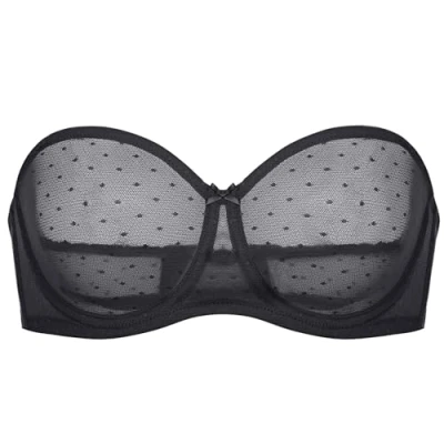 DOBREVA Women's Strapless Bra See Through Sheer Underwired Bras Unlined Plus Size Black 42D
