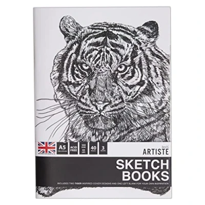 BRAND Artiste offers great value for money art supplies, fantastic quality, and ease of use, making them a firm favourite with crafters everywhere! All you need to be a true Artiste! PAPER Each sketch pad features 40 pages of high quality 140gsm paper, can be used with alcohol marker, pen, ink, mixed media DESIGN Two tiger themed notebook designs, one left blank for your own personalised masterpiece.Use with wet or dry techniques that include watercolours, acrylics, oil painting, pens, and ink. Sketchbooks are designed for everyday use USE Take with you for quick sketching on-the-go.Ideal for keeping with you when inspiration strikes!A surface for all projects.Small enough to carry while you travel.Pads are durable and have a lightly textured surface MANUFACTURED These art pads were designed and made in the UK.Can also be used as a bullet journal, notepad, diary, note book, and scrapbook