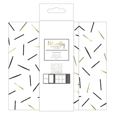 This Metallic Mono organiser is part of the brand new 2018 Noteworthy range from docrafts, featuring black and white monochrome bold designs topped off with luscious flashes of gold foiling. This A3 Organiser features a weekly planner, along with a to-do list and space for many notes. It is perfect for getting organised and staying organised. There is also a section to put down your thoughts and ideas. It is the perfect addition to your stationery collection. Great to use at home or in the office. Its compact design fits easily into your bag or pocket.