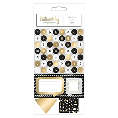 This Metallic Mono Sticker Sheet is part of the brand new 2018 Noteworthy range from docrafts, featuring black and white monochrome bold designs topped off with luscious flashes of gold foiling. This pack comprises of 60 stickers. Featuring alphabet, arrow icons and speech bubble design stickers. These stickers will make your reminders and events more exciting and colourful. Use these stickers to brighten up your stationery, desk or embellish your notebooks and planners. You can accessorise anything and everything. These stickers are the perfect addition to your stationery collection. Great to use at home, school or in the office.