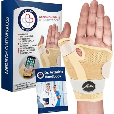 DEVELOPED BY DOCTORS: Our thumb support splint is designed by medical doctors for optimal wrist and thumb support. With 2 aluminum splints, our thumb brace holds your thumb in place and provides hand support for arthritis and other conditions. DOCTOR-WRITTEN HANDBOOK INCLUDED: Gain valuable insights from our expertly written handbook included with our trigger thumb splint. Learn more about your condition, treatment options, & rehabilitation exercises to improve your thumb & wrist function. COMFORTABLE & DURABLE: Our thumb support for arthritis is made with a high-quality blend of neoprene and spandex materials, providing thumb and wrist support while allowing remaining fingers to move freely and perform daily tasks efficiently. RELIABLE RELIEF & RECOVERY: Prioritize your health with our multi-use carpal tunnel splint. It relieves symptoms of trigger thumb, tendinitis, RSI, or even De Quervain's tenosynovitis, and offers thumb support for left hand or right hand use. DR. ARTHRITIS PROMISE: You can trust our medical doctor-led team to answer all questions within 24h. Purchase confidently, knowing if there are any issues with our thumb spica splint, we’ll provide support and send you another immediately.