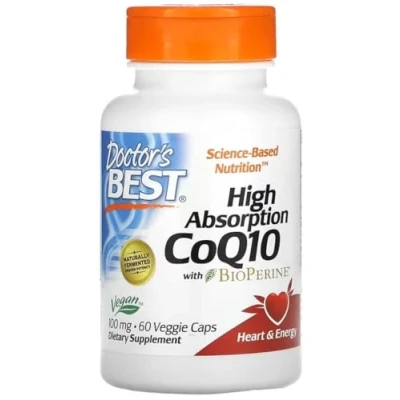 Doctor's Best High Absorption CoQ10 with BioPerine 100mg for Heart Health and Energy 60 Capsules