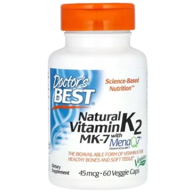 Doctor's Best Natural Vitamin K2 MK7 with MenaQ7 Supports Bone Health 45mcg, 60 Vegan Capsules