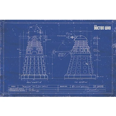 Doctor Who Dalek Blueprint Maxi Poster Officially licensed product Produced in the UK 61cm x 91.5cm (24 x 36 inches) in size Rolled into a cardboard shippable tube