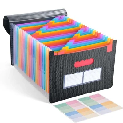 High Quality Materials This 26 grid accordion binder is made of high quality polypropylene, which has good flexibility and durability, and can withstand long-term use without deformation. Its transparent design allows you to see the internal files at a glance, making it easier to find and manage. EFFICIENT USE OF SPACE The accordion design allows this binder to be easily unfolded and folded, saving storage space. Whether it is placed in a desk drawer, bookcase or filing cabinet, every inch of space can be effectively used to keep the desk tidy. Multi-grid classification management: The 26 independent grids are designed to provide enough space for files and materials for convenient classification and management by category or project. The clear label slot allows you to easily mark the contents of each grid and improve work efficiency. Convenient to Carry This file folder is lightweight and portable, and equipped with a handle design that you can carry with you comfortably. Whether on a business trip, meeting or everyday office life, you can easily take it with you to ensure important documents are always available. Multifunctional use: in addition to file management, this file folder is also suitable for a variety of occasions, e.g. For organising study materials of students, managing family bills and receipts, etc. Its multi-part design and transparent material make it the ideal choice for different file management needs.
