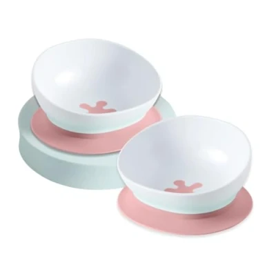 doddl 2 in 1 Baby and Toddler Bowl with Suction Non Slip Base. Weaning Essentials Dusty Rose (Twin Pack