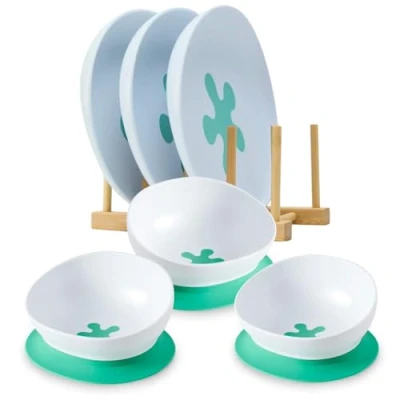 doddl Bowl & Plate Bundle. The 2 in 1 Baby and Toddler with Suction for led weaning Non Slip Base, Self Feeding Essentials, Dishwasher Safe (Fresh Green (Triple Pack))