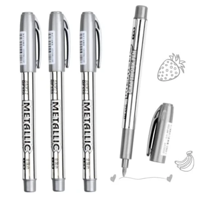 DOETYD 4 PCS Metallic Marker Pens Silver Permanent for Making Art Card Painting Album DIY Scrapbook