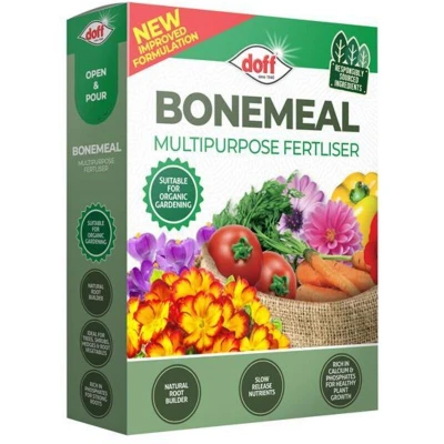General description DOFF Bonemeal Multipurpose Fertiliser is a slow-release plant food designed to enhance root development around the stems of plants. It is ideal for planting trees and shrubs, ensuring they establish well, and serves as a general plant food to maintain optimal plant health. Technical specifications Weight: 2 kg Form: Dry fertiliser Usage Sprinkle by hand around shrubs and bushes. Water in after application. Other information Suitable for organic gardening.