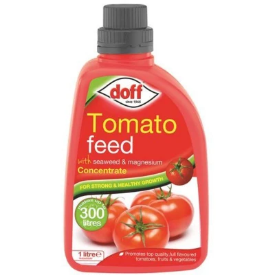 General description Doff Tomato Feed Concentrate is a high potash fertilizer enriched with seaweed and magnesium (0.012% Mg) designed to promote strong, healthy growth and high yields of flavorful tomatoes. This versatile feed is also suitable for courgettes, aubergines, and all flowering plants. Technical specifications Size: 1 Litre Fertilizer NPK: 4:5:8 Magnesium content: 0.012% Mg Usage Easy to dilute, this liquid formula allows 1 litre to make up to 300 litres of plant feed, making it efficient for both outdoor and growbag tomato cultivation, as well as for enhancing the blooms of flowering pot plants.