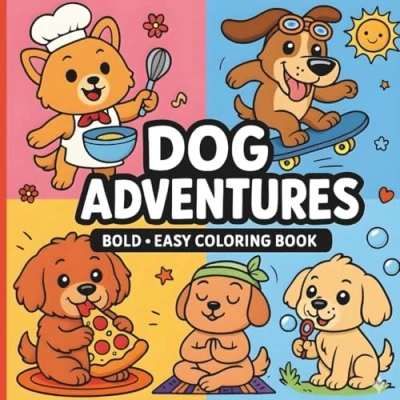 Dog Adventures: Bold & Easy Coloring Book: 40 Cute Fun Pages for Kids, Teens Adults (Cat Adventures Book Series)