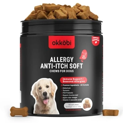 Dog Allergy Chews 150Pcs Relief Supplements for Itchy Skin and Paw Licking US Formula with Probiotics, Natural Ingredients & Vitamins Beef