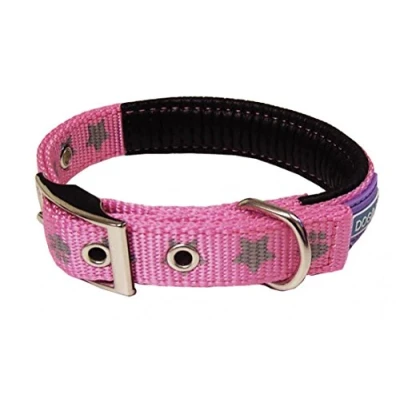 Dog & Co Reflective Nylon Padded Collar Pink 10-14"