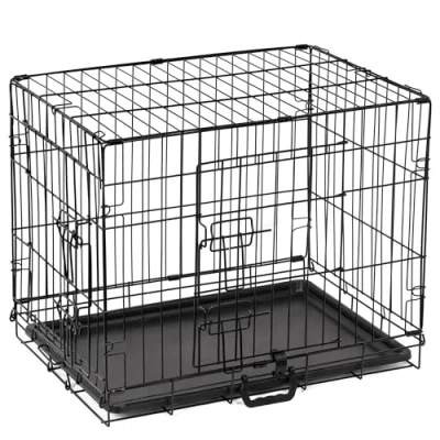 【2-Access Doors】Each dog crate has a door on the front and a door on the side,exit with heavy-duty hook latches on each doorway,easy access,giving pets their own crates provides them with a sense of security. 【High Quality】These sturdy secure double door dog crates are made of solid strong steel,the strong metal frame has an anti rust black powder coating for long lasting use.With a brilliant base tray constructed to be non-chew. 【Safe & Secure】Each door has two sliding mechanisms to keep this safe for your pets and prevent them from escaping, each side of the cage also hooks strongly onto the other, keeping this from collapsing easily. 【Easy Assembly & Portable】The pet cage comes flat packed and can be assembled in minutes without any tools.When it comes to storage. It can also be folded down for easy transportation and space-saving storage. 【Leak-Proof Plastic Tray】This dog cage also comes standard with a slide-in crate training tray A leak-proof plastic base tray constructed to be non-chew and removed for cleaning. Simply slide it out and wash it. It can be folded flat for travel and storage/portability.