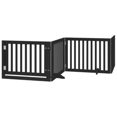Dog Gate with Door Foldable 6 Panels Black 480 cm Poplar Wood vidaXL