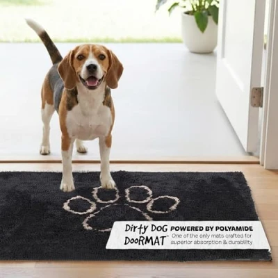 Dog Gone Smart Dirty Microfiber Doormat, Super Absorbent Machine Washable with Non Slip Backing, Medium, Black Hue