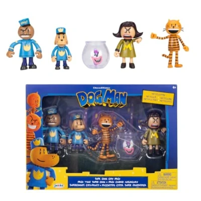 George and Harold have created a new breed of justice—one that is part dog, part man, and ALL HERO! Each figure has 2-5 points of articulation for creative play. Inspired by the characters from the Dog Man movie Suggested for kids ages 4 years and up Officially licensed Dog Man product by JAKKS Pacific, Manufacturer: Jakks Pacific