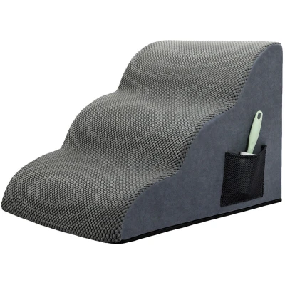 Comfortable Dog Steps: This foam dog ramp is designed directly against the edge of a bed, sofa or other furniture, pet stairs solves the problem of small dogs climbing onto the high bed or sofa, so your pet can climb up and down comfortably. This dog stair is available in 2, 3 or 4 steps, so you can choose the right size according to the height of your sofa. High-Density Foam Base: Adopting 30D high density foam, our pet stairs features high resilience and no deformation, which reduces the pressure on pets' paws while providing stable support for them. The 17 ° gentle slope combines the advantages of stairs and ramps, making it easier for dogs to climb up and down from high places while reducing pressure on joints. Double Non-Slip Design: The surface of the dog steps features a ridged Pineapple fleece that provides excellent grip, enhancing traction and comfort for your dog's paws. Additionally, non-slip beads on the bottom of the cover prevent wobbling and movement, ensuring stability and safety during climbing. This design helps reduce fear and makes pets more willing to approach you. Upgraded Dog Stairs: Our pet ramps are designed differently from traditional dog stairs. The improved slope angle is perfect for young puppies, short-legged dogs, injured dogs with limited mobility, and older pets. This low-angle slope design helps protect your pet's joints. The stairs are lightweight yet sturdy, making them easy to move to any desired location. Bonus Pet Hair Removal Brush: The package also includes a pet hair remover and to help you easily remove hair from your pet ramp and keep it clean at all times. In addition, there is a cloth bag on the side of the step that can be used to store things such as hair removal brush.