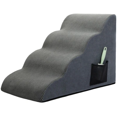 Comfortable Dog Steps: This foam dog ramp is designed directly against the edge of a bed, sofa or other furniture, pet stairs solves the problem of small dogs climbing onto the high bed or sofa, so your pet can climb up and down comfortably. This dog stair is available in 2, 3 or 4 steps, so you can choose the right size according to the height of your sofa. High-Density Foam Base: Adopting 30D high density foam, our pet stairs features high resilience and no deformation, which reduces the pressure on pets' paws while providing stable support for them. The 17 ° gentle slope combines the advantages of stairs and ramps, making it easier for dogs to climb up and down from high places while reducing pressure on joints. Double Non-Slip Design: The surface of the dog steps features a ridged Pineapple fleece that provides excellent grip, enhancing traction and comfort for your dog's paws. Additionally, non-slip beads on the bottom of the cover prevent wobbling and movement, ensuring stability and safety during climbing. This design helps reduce fear and makes pets more willing to approach you. Upgraded Dog Stairs: Our pet ramps are designed differently from traditional dog stairs. The improved slope angle is perfect for young puppies, short-legged dogs, injured dogs with limited mobility, and older pets. This low-angle slope design helps protect your pet's joints. The stairs are lightweight yet sturdy, making them easy to move to any desired location. Bonus Pet Hair Removal Brush: The package also includes a pet hair remover and to help you easily remove hair from your pet ramp and keep it clean at all times. In addition, there is a cloth bag on the side of the step that can be used to store things such as hair removal brush.