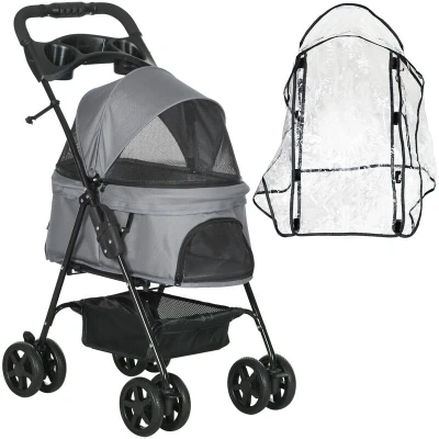 Dog Stroller with Rain Cover eva Wheels Brake Basket Adjustable Canopy Pawhut
