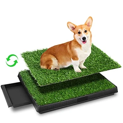 - Improved dog toilet with removable tray for easy cleaning - Suitable for small, medium and large dogs as well as older dogs - Made from artificial grass for a natural feel - Two grass mats included, with the possibility to replace them - Improved quality of the grass mats for longer durability