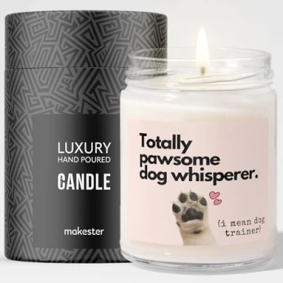 Dog Trainer Gifts Luxury Soy Wax Candle Vanilla, Jasmine, Sugared Almond Makester