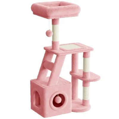 Dogat Cat Tree, Tree Tower, Scratching Post Multi Level, Activity Centre Play House Furniture for Small/Medium Cats, Condo Climbing Pink