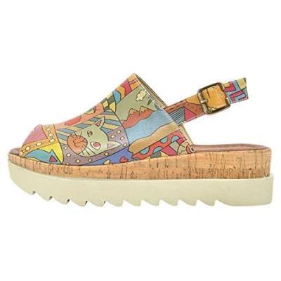 VEGAN - All our products are vegan and made of high quality faux leather. Animals are our Friends. HAND MADE DOGO visualize the art of storytelling and inspirational design. Our products are made by hand. STYLE Gigi open toe wedge sandal will show off your ultimate style. These lightweight and comfortable sandals can be adjusted to fit your football by the wrist strap. Give your favourite print and colour of your steps. UNIQUE DESIGN Our Talented and Young Design team hits the streets and creates the roots. Designs inspired by nature, animals and special characters will have a little look at your face. Every Dogo Design is a piece of art and brings happiness to your life. CREATIVE & ECO FRIENDLY DESIGN We are paired with a clear message. We offer new materials with low environmental influences. Feel the freedom of ethical fashion with DOGO.