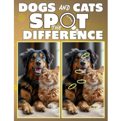 Dogs and Cats Spot the Difference: Over 55 Picture Puzzles with 550 Differences to Find for Kids, Adults, Teens, Seniors. (Find Difference Books Kids & Adults)