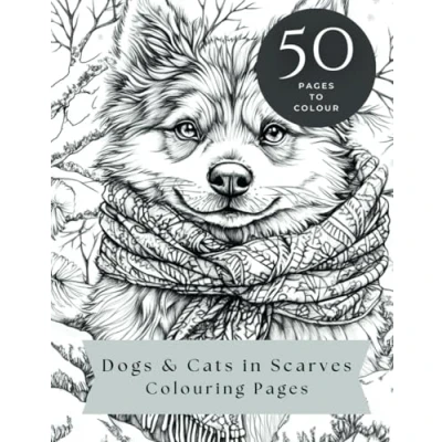 Dogs & Cats in Scarves 50 Relaxing Colouring Page Images for Adults and Children