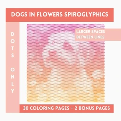 Dogs In Flowers Spiroglyphics Dots Only: One Color Coloring Book With Unique Ilustraions To Discover