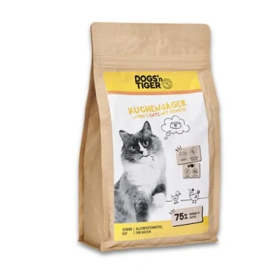 High meat content: our dry food with 75% meat from chicken and duck tastes particularly good for older cats and provides seniors with all the important ingredients for old ages Premium dry food: selected herbs and important minerals make in addition to the high raw material quality a decisive difference in the digestibility of the food for the cat Grain-free and sugar-free: our dry food for older, sterilised or neutered cats comes without grains, sugar and artificial flavourings, colours and preservatives and is 100% food grade Professional recipes: whether cat snacks, wet food or dry food – all formulas have been developed together with veterinarians and nutritionists Our motto: We at Dogs'n Tiger simply want good food - species-appropriate and responsible with love, science, the finest ingredients and delicious formulas that are precisely tailored to the needs of your fur nose