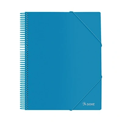 Folder with 20 cover Transparent covers inside 40 microns. Color plastic spiral and matching elastic bands.