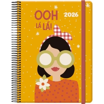 Dohe 2026 Daily Planner Day per Page, A5 (15x21 cm), Hardcover, Spiral and Elastic Closure, 12 Months January to December, 4 Sticker Pages, Annual in Spanish Cute Oh Là