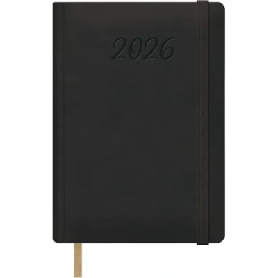 Dohe 2026 Diary Day Page, A5 (15 x 21 cm), Leatherette Hard Cover, Rubber Closure, Bookmark, 12 Months January to December, Yearly Planner in Spanish Samba Black