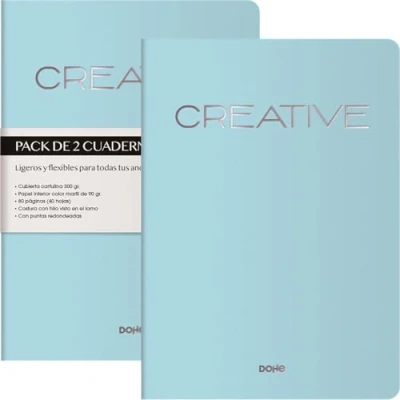 [PACK 2 NOTEBOOKS]: Set of 2 Dohe Creative notebooks, specially designed for notes, organization or drawings [SMOOTH INTERIOR]: Your notebook, your space. Blank inside so you can distribute everything you need however you like. [SPACIOUS AND MAXIMUM QUALITY]: With A4 size (21x29.7cm). Each notebook includes 40 sheets (80 pages) on 90gsm hollowed paper. Smooth and durable surface for writing or drawing. [FLEXIBLE SOFT COVER]: Comfortable to carry thanks to its flexible lid made of high thickness cardboard [MULTIFUNCTION]: Useful for any environment. Office, school notebook for notes and notes, home reminders, personal diary, business notebook and even a perfect gift pack.