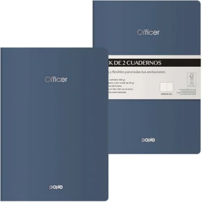 DOHE A5 Plain Interior Notebooks (2 pcs.) Size 15x21cm, 40 Sheets (80 pages), 90 g/m², Notes, Organization or Drawing, Flexible Soft Cover OFFICER Blue