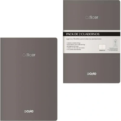 DOHE A6 Plain Interior Notebooks (2 pcs.) Size 9x14 cm, 40 Sheets (80 pages), 90 g/m², Notes, Organization or Drawing, Flexible Soft Cover OFFICER Grey