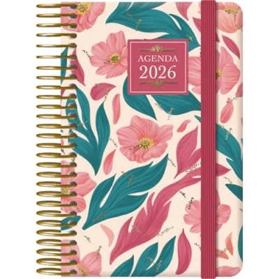 ✔️ ANNUAL AGENDA 2026: Organize your 2026 with this planner in Spanish that covers the 12 months from January to December, ideal for structuring your goals and commitments clearly and effectively. A compact agenda with 144 pages for meetings, business trips or personal use. ✔️ WEEK VIEW FORMAT: Review and review all your notes thanks to its weekly view format. From Monday to Wednesday on one page, and from Friday to Sunday on the other. ✔️ POCKET SIZE: Compact dimensions of 8.5x13 cm. A perfect planner to carry without inconveniences in your pocket, bag or backpack. You can store it anywhere without worrying about space. ✔️ SPIRAL AND RUBBER CLOSURE: Hard cover with pleasant and soft touch, and gold engravings. It has a 360º gold metal ring closure and elastic band for even safer protection of all your contents. 🍊 OFFICIAL DESIGN OF NARANJALIDAD: All the covers of our Charm line have been designed by the prestigious illustrator Naranjalidad, whose illustrations have been exhibited in several cities around the world and she has worked for major brands