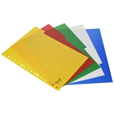 Dividers for folders and ring binders Manufactured in polypropylene 120 micron with 16 holes punched Delivered in individual self-adhesive bag