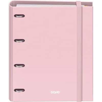 Dohe Binder with Refill 4 Ring Folder, A4 (28x32 cm), 100 Sheets 5x5 mm Grid Paper, Colour Dividers, Extra Storage Pocket and Elastic Closure Serenity Pink