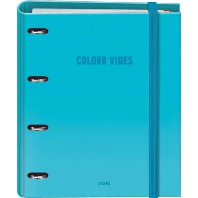 Dohe Binder with Refill 4 Ring Folder, A4 (28x32 cm), 100 Sheets 5x5 mm Grid Paper, Colour Dividers, Extra Storage Pocket and Elastic Closure Vibes Cyan