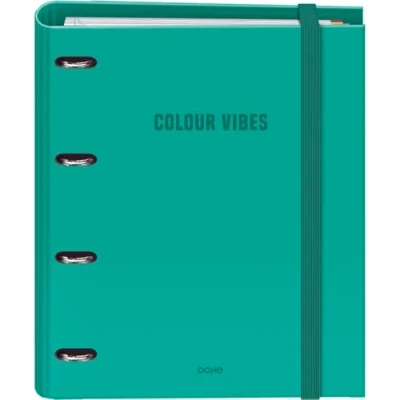 Dohe Binder with Refill 4 Ring Folder, A4 (28x32 cm), 100 Sheets 5x5 mm Grid Paper, Colour Dividers, Extra Storage Pocket and Elastic Closure Vibes Green