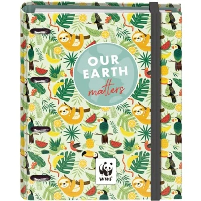 Dohe Binder with Refill 4 Ring Folder, A4 (28x32 cm), 100 Sheets 5x5 mm Grid Paper, Colour Dividers, Extra Storage Pocket and Elastic Closure WWF Tropic