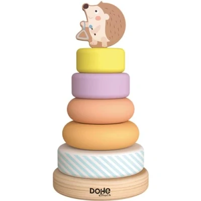 [EDUCATIONAL GAME]: Includes 5 different sized wooden hoops and a base with for a complete and fun learning experience. Plus, with a funny hedgehog to put on top once all the hoops are attached. [LEARNING THROUGH PLAY]: Combine fun and education for children to learn by playing and stimulate their imagination and creativity [MOTOR DEVELOPMENT]: Helps develop hand-eye coordination and manual skill as kids stack the bold colored hoops [COGNITIVE STIMULATION]: Promotes logical reasoning and size sorting, encouraging cognitive development in an intuitive and fun way [SAFE AND DURABLE]: Made of high-quality natural wood to ensure the safety of little explorers during play, Manufacturer: Dohe