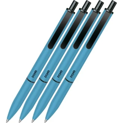 DOHE Elegance Pens (4 pcs) BLUE Ink, Medium 1 mm Tip, Barrel, Retractable “Touch Mechanism and Clip, Durable Aluminium Body with Rubber Coating, Soft Touch