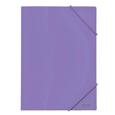 Rubber folder with three flaps. Round rubber closure. Made of opaque polypropylene glass of 600 microns. Size 24 x 32 cm