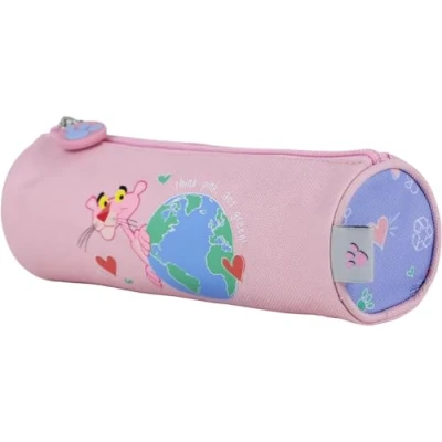DOHE Round School Pencil Case Zipper Closure, Official License, Durable Polyester, 21x7.5x7.5 cm, Supplies Pink Panther ecoPink