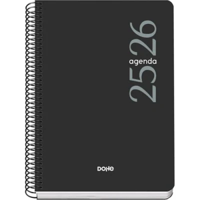 Dohe School Planner 2025 2026 Day per Page, A5 Size (15x21 cm), Spanish and English, September to June, Spiral Binding, Flexible Cover ESENCIAL Black